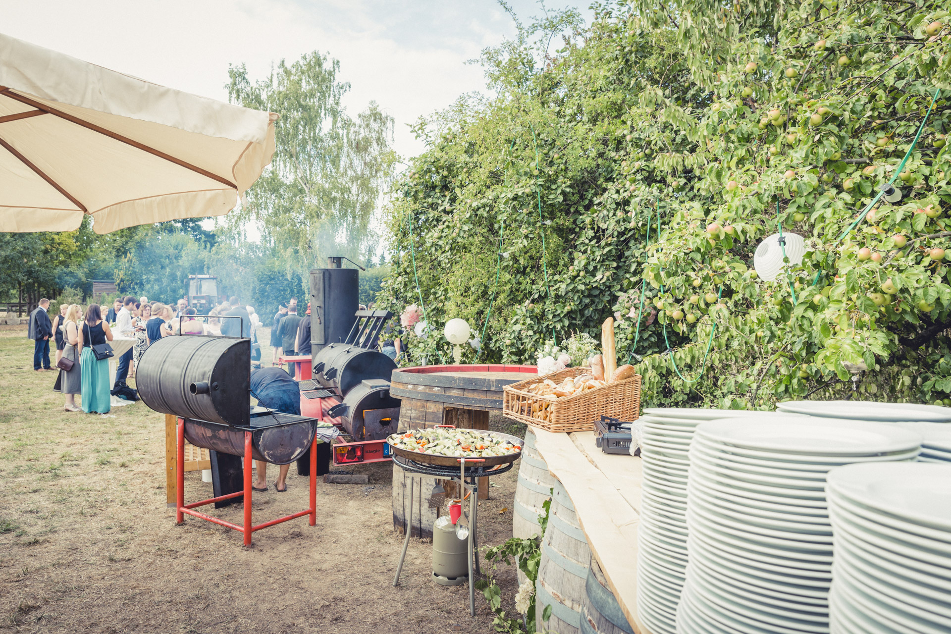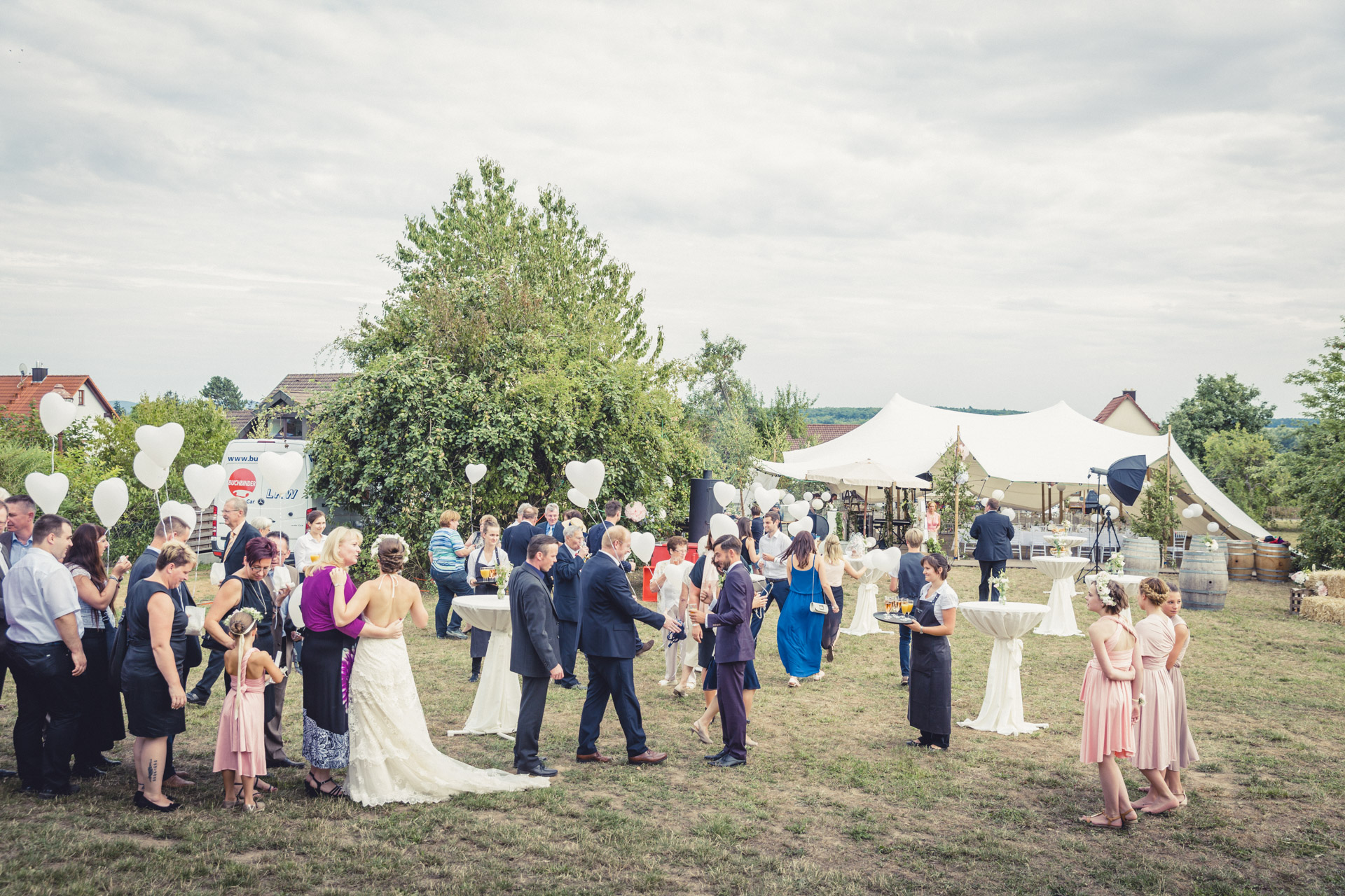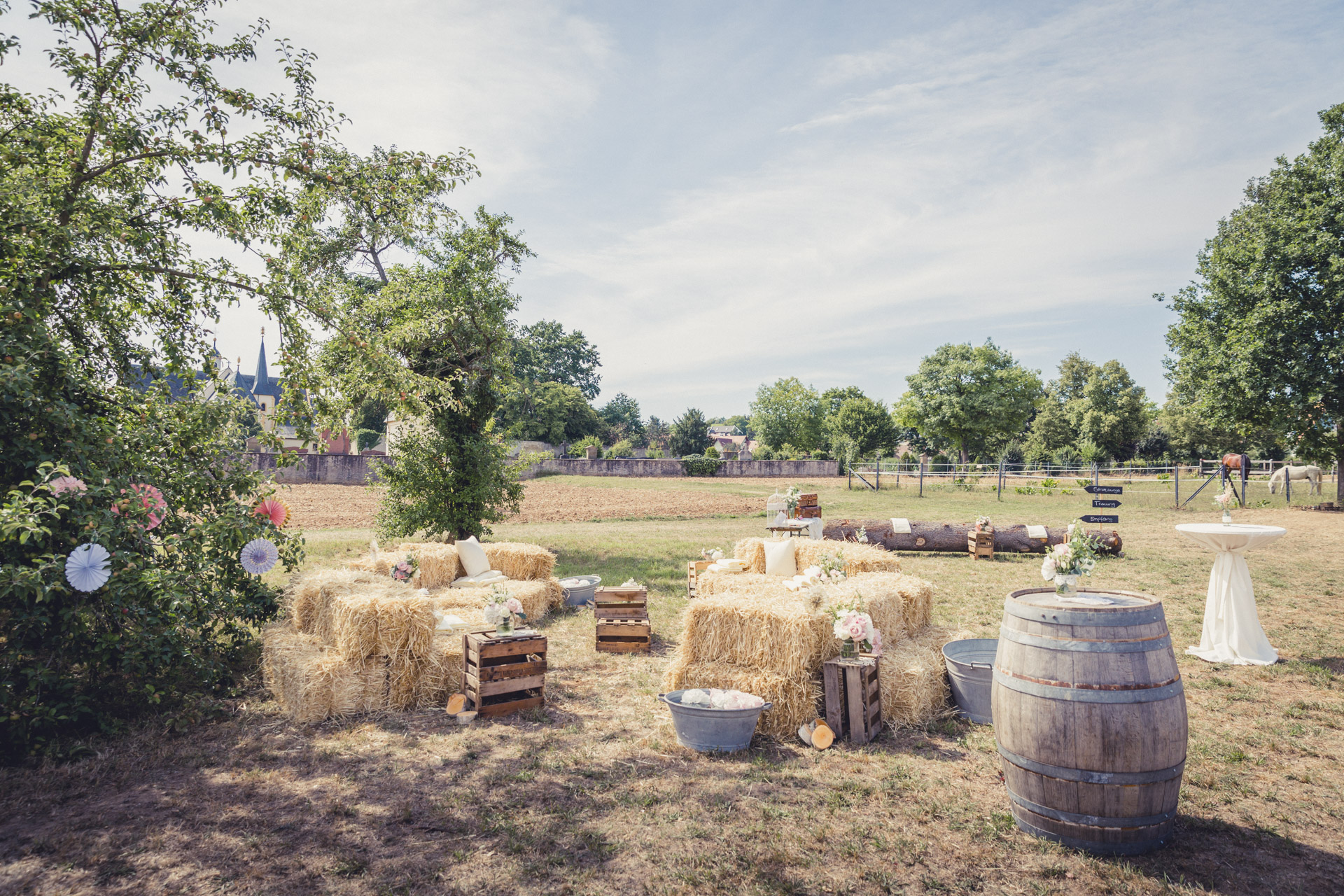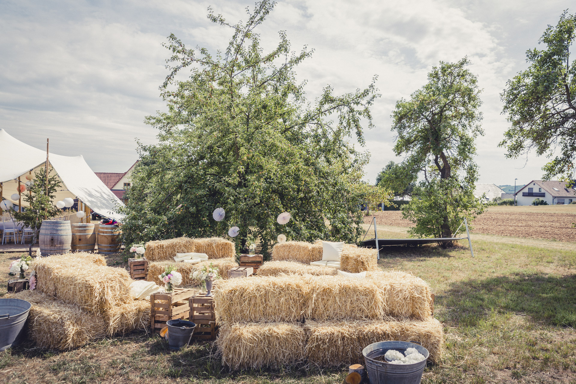 Freie Traung auf der Pferdekoppel, Party im Zirkuszelt zwischen den Obstbäumen
